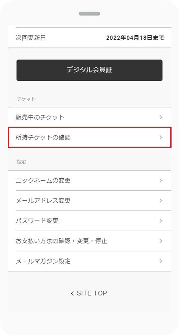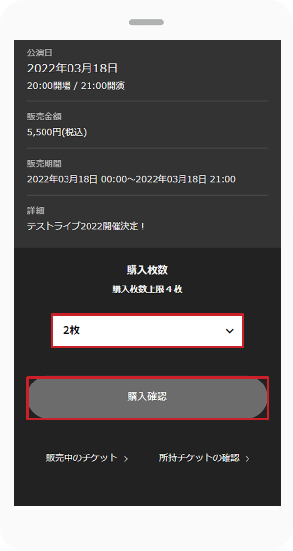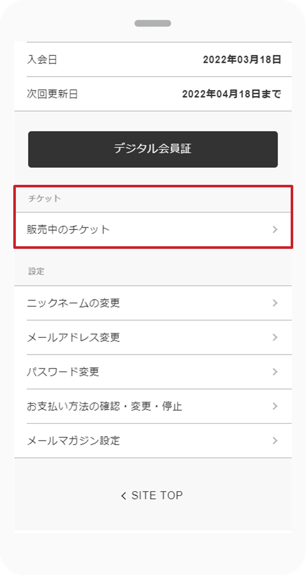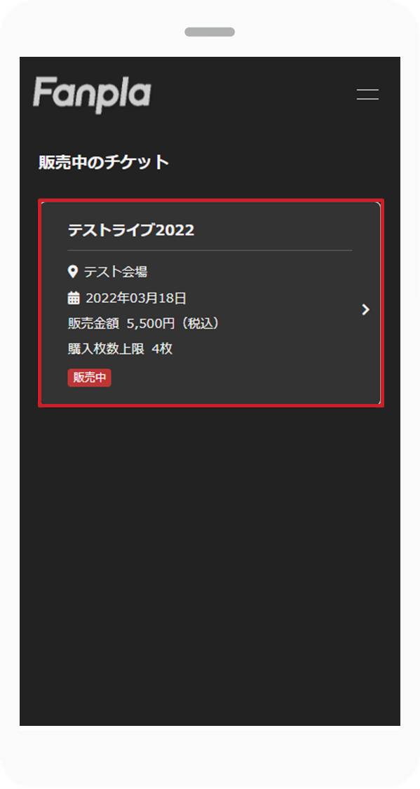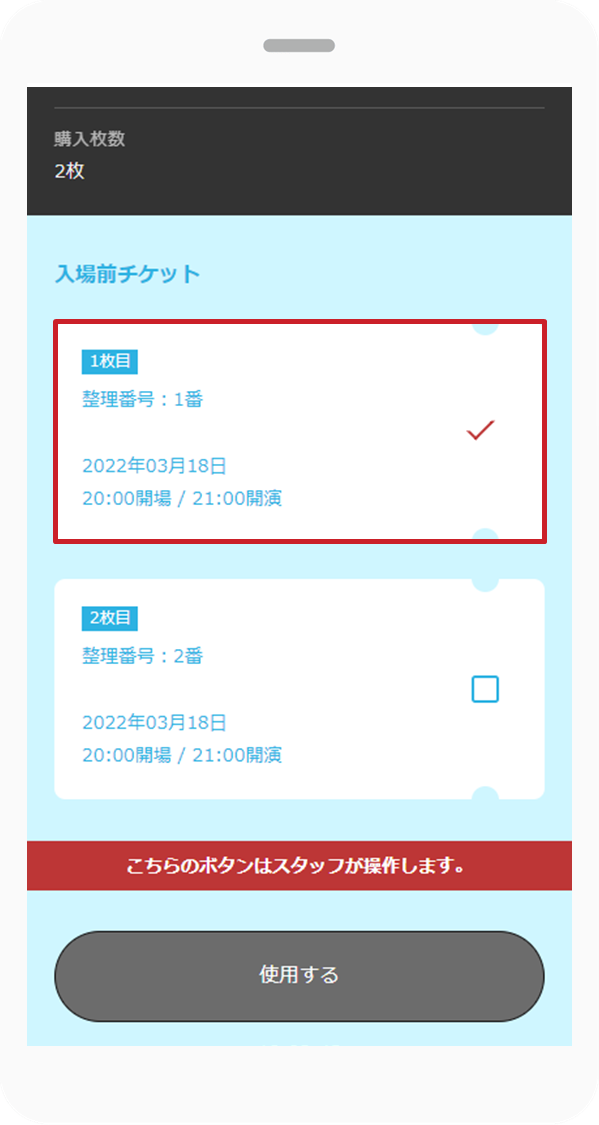 • ・開場時間の3時間前よりチケットページ内に「入場前チケット」が表示されます。