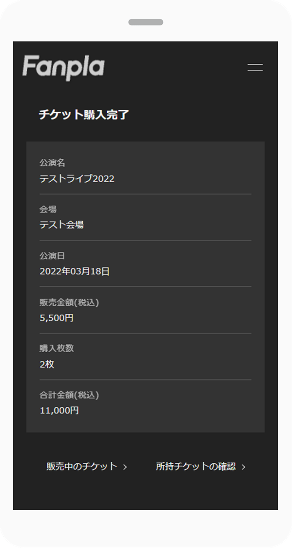 • ・チケット購入完了後、購入完了メールが送信されます。