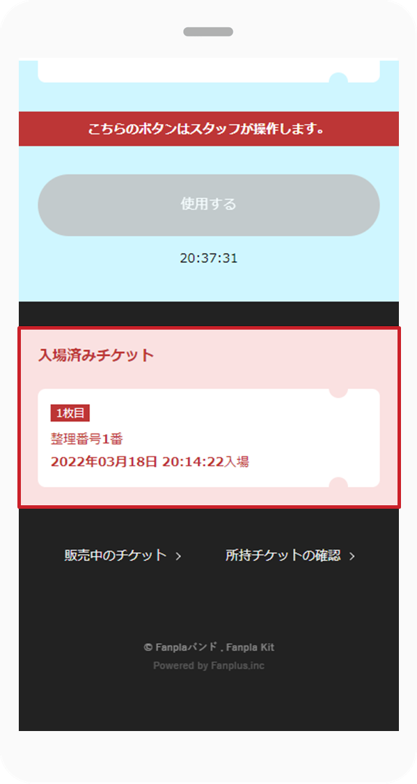 • ※開場時間になっても「使用する」ボタンが表示されない場合は「再読み込み」ボタンを押してください
